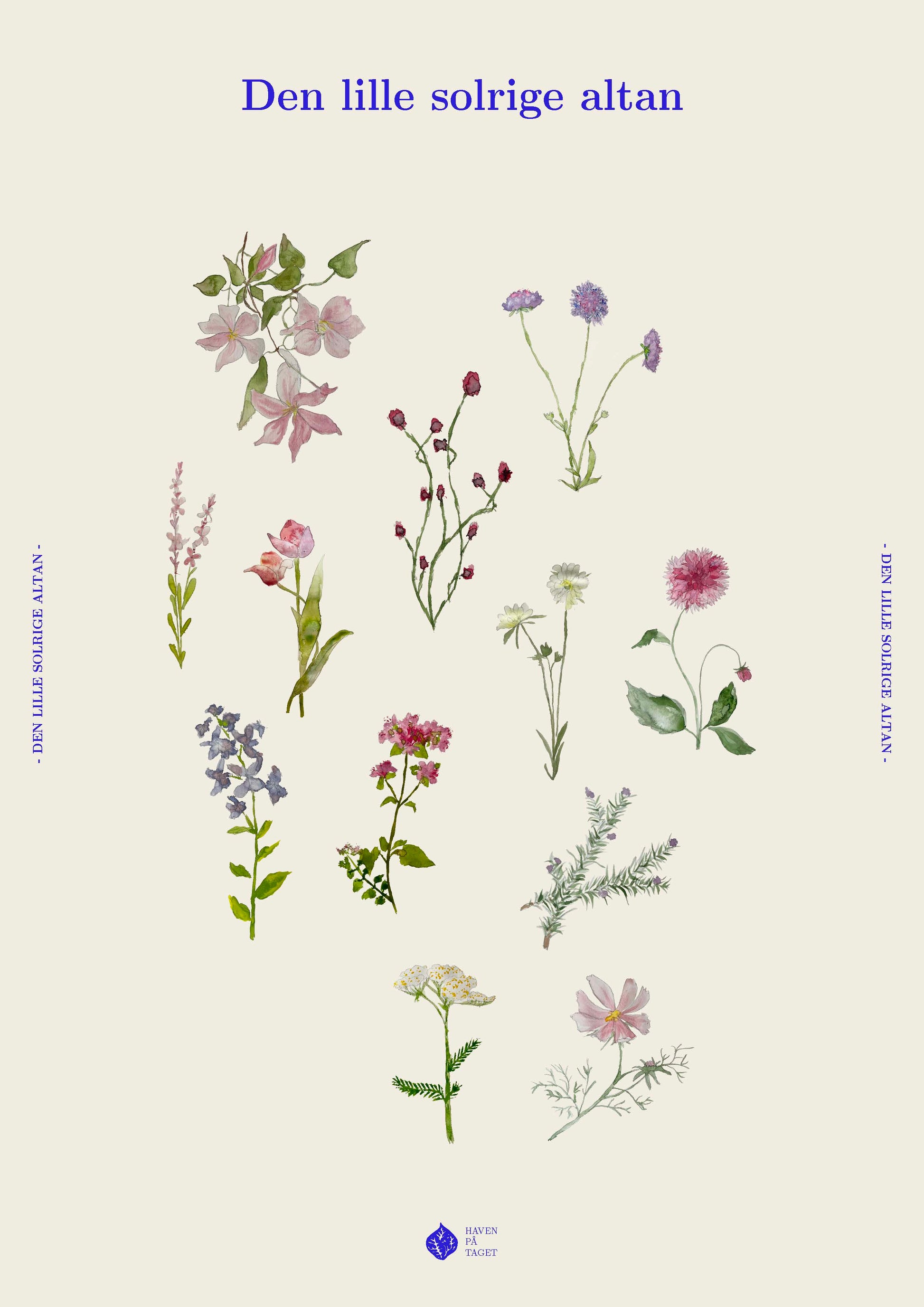 En altan - uanset størrelse og orientering ift. til lys - giver dig en fantastisk mulighed for at skabe et grønt uderum. Man skal, efter min bog, ikke være bange for at plante meget og mange forskellige ting på sin altan. Et frodigt lille fristed giver så meget glæde i hverdagen. Her får du et konkret forslag til, hvordan du kan indrette en lille, solrig altan med blomster, krydderurter og klatreplanter.