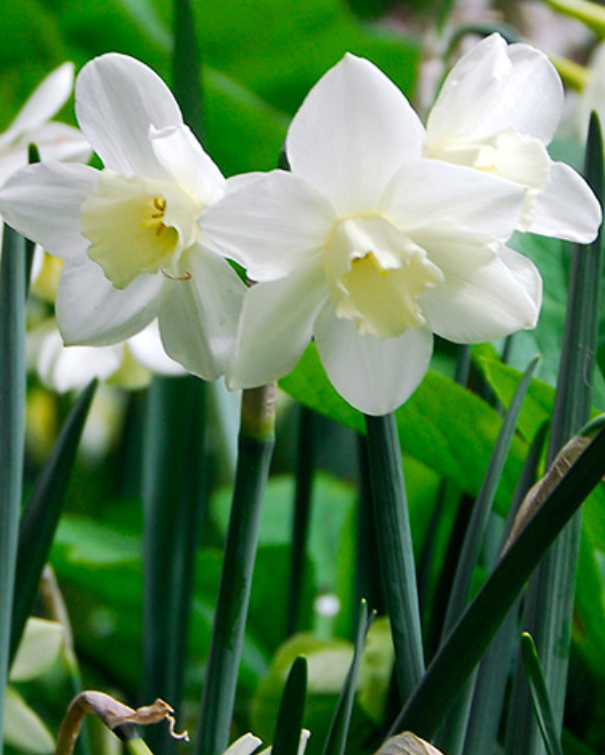 Duftende cremehvid narcis med svagt gul midte. Blomstrer i i april og bliver ca. 30 cm høje.