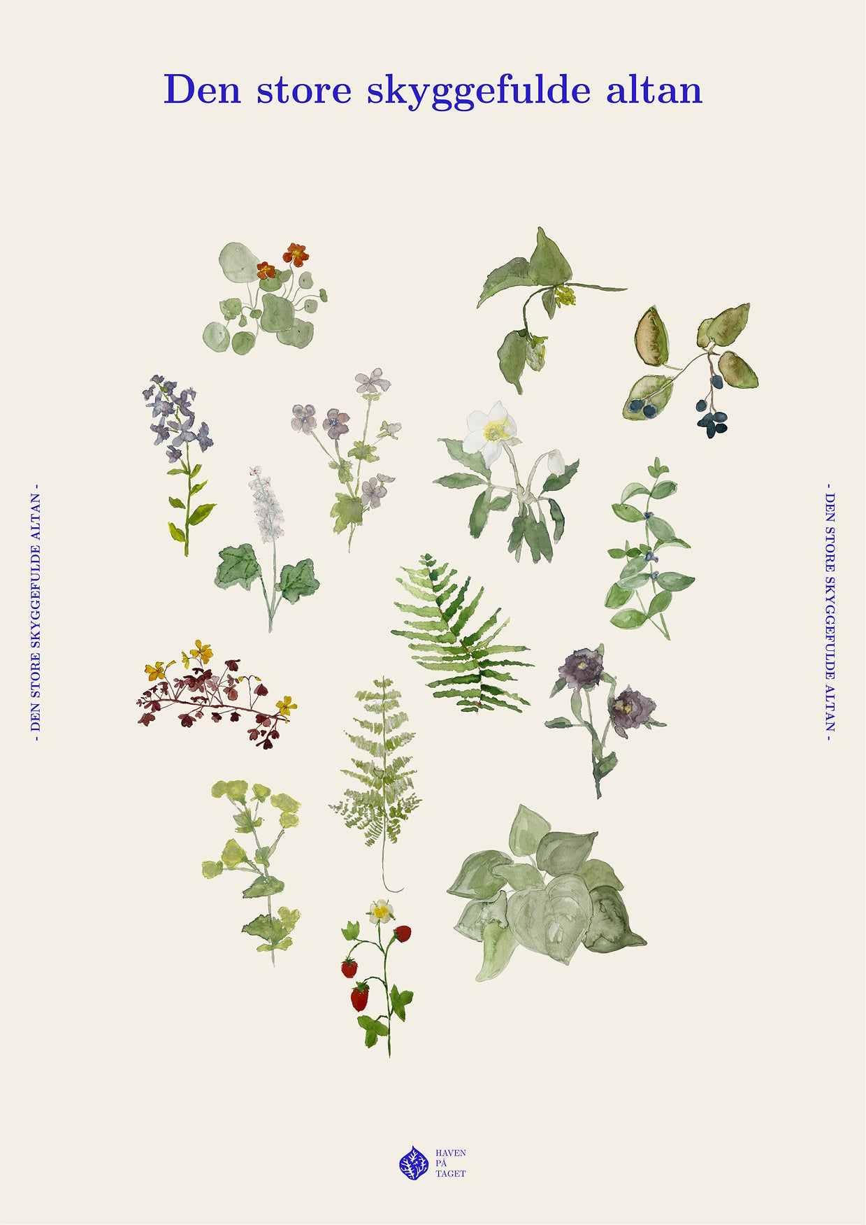 En altan - uanset størrelse og orientering ift. til lys - giver dig en fantastisk mulighed for at skabe et grønt uderum. Man skal, efter min bog, ikke være bange for at plante meget og mange forskellige ting på sin altan. Et frodigt lille fristed giver så meget glæde i hverdagen. Her får du et konkret forslag til, hvordan du kan indrette en stor, halvskygget altan med blomster, krydderurter, klatreplanter og små træer og buske.