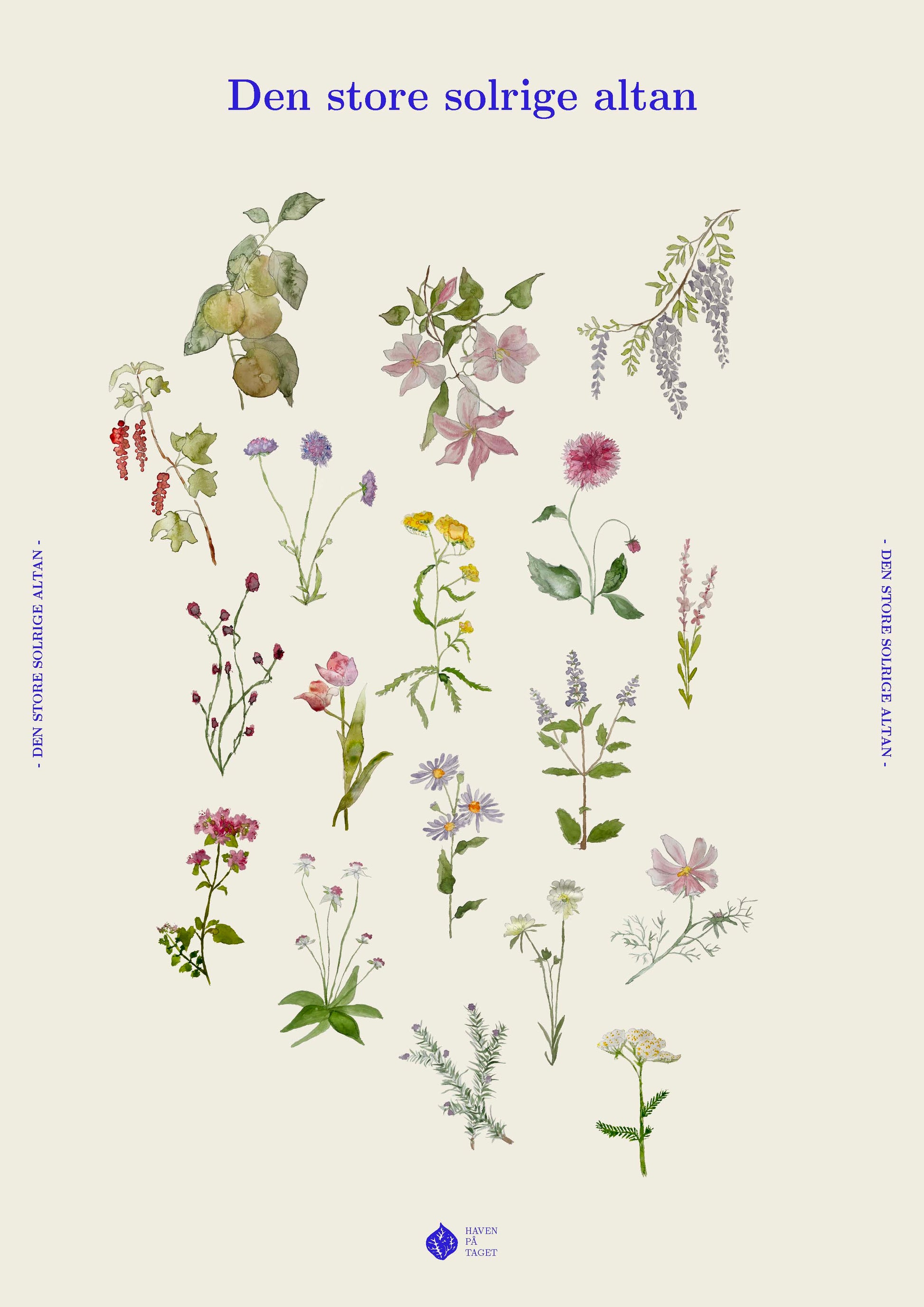 En altan - uanset størrelse og orientering ift. til lys - giver dig en fantastisk mulighed for at skabe et grønt uderum. Man skal, efter min bog, ikke være bange for at plante meget og mange forskellige ting på sin altan. Et frodigt lille fristed giver så meget glæde i hverdagen. Her får du et konkret forslag til, hvordan du kan indrette en stor, solrig altan med blomster, krydderurter, klatreplanter og små træer og buske.