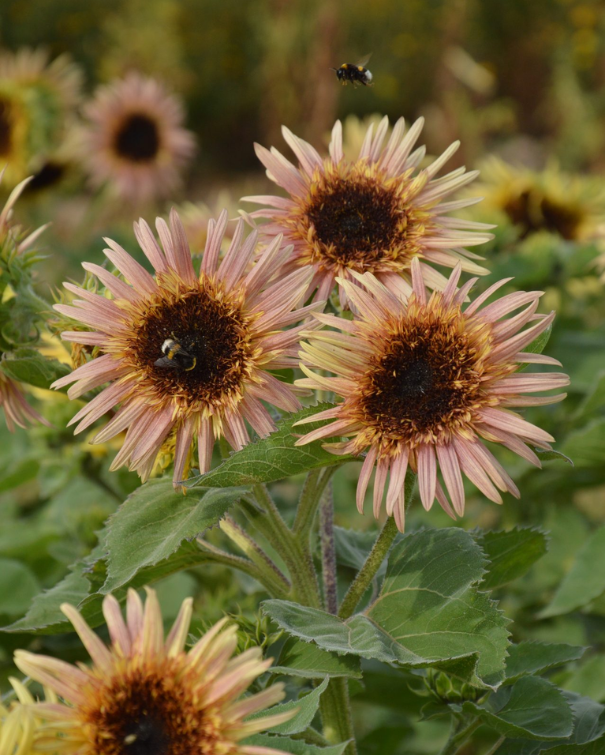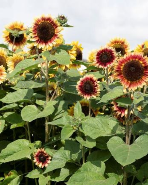 Kobberfarvede til helt lyse. Helt anderledes i udtrykket end almindelige solsikker. To varianter.